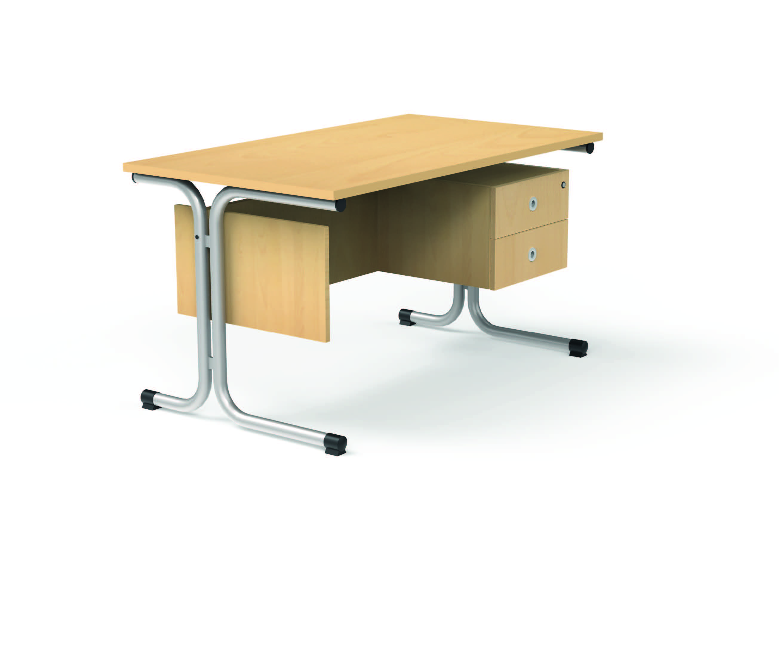 Biurko w kolorze bukowym. Istnieje możliwość wyboru koloru blatu: buk lub krem, jak również całego biurka w kolorze kremowym.